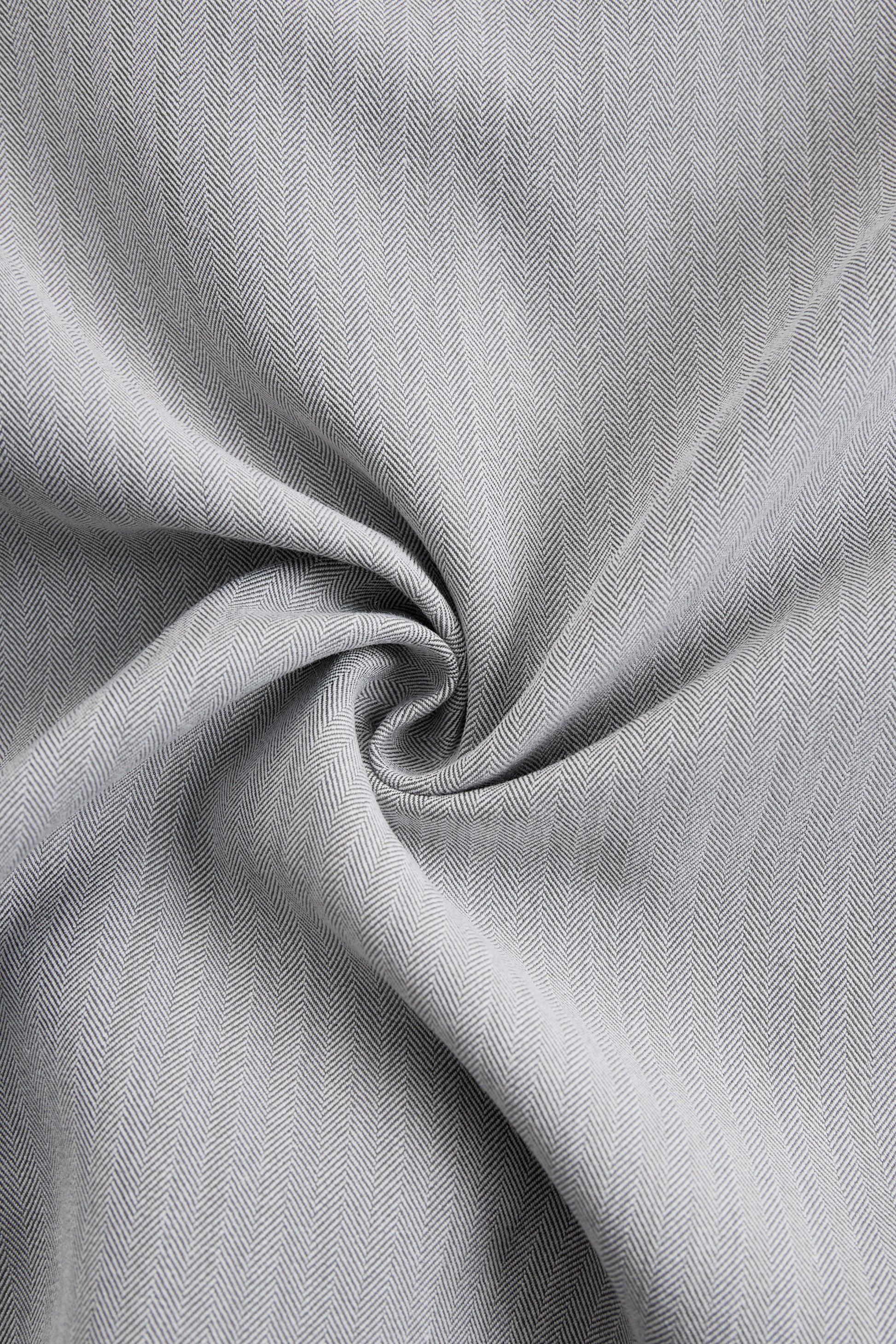 The Mooyius Grey Herringbone Blazer & Pencil Skirt Set is a masterclass in refined tailoring and timeless sophistication. Crafted in a subtle herringbone pattern, the blazer features sharp lines with velvet contrast details along the collar, button placket, and pocket flaps, adding depth and luxurious texture. Its structured silhouette with defined shoulders and cinched waist creates a powerful yet feminine shape, while the double front pockets blend practicality with elegance.